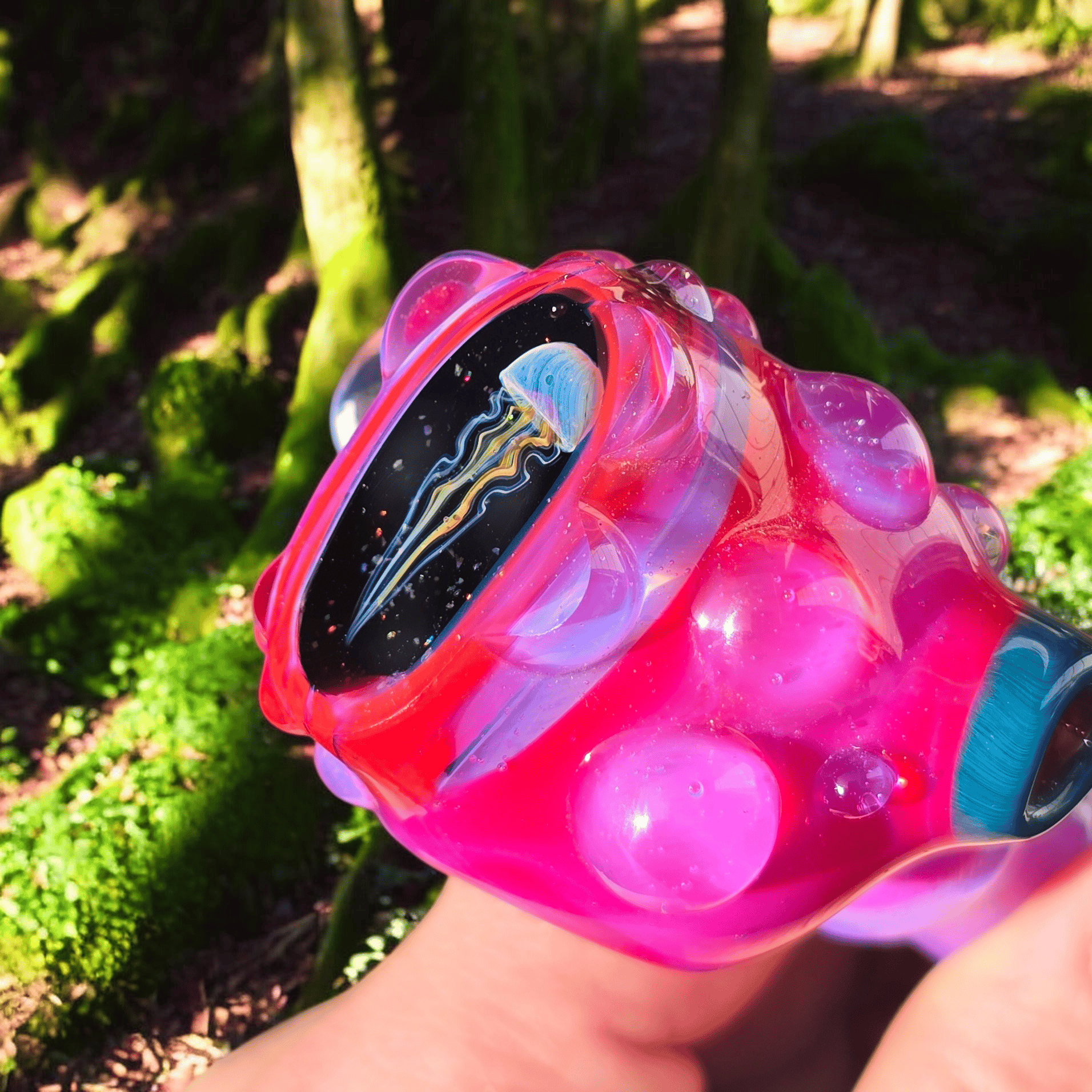 Faceted jellyfish with crushed opal accents on functional spoon.